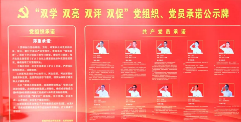 二是確保“雙亮”工作規范化、常態化。項目部嚴格按照規定每半年制定黨組織承諾、黨員承諾,定期檢查黨徽佩戴情況,桌牌擺放情況,時刻引導黨員“亮身份”,便于群眾的監督。