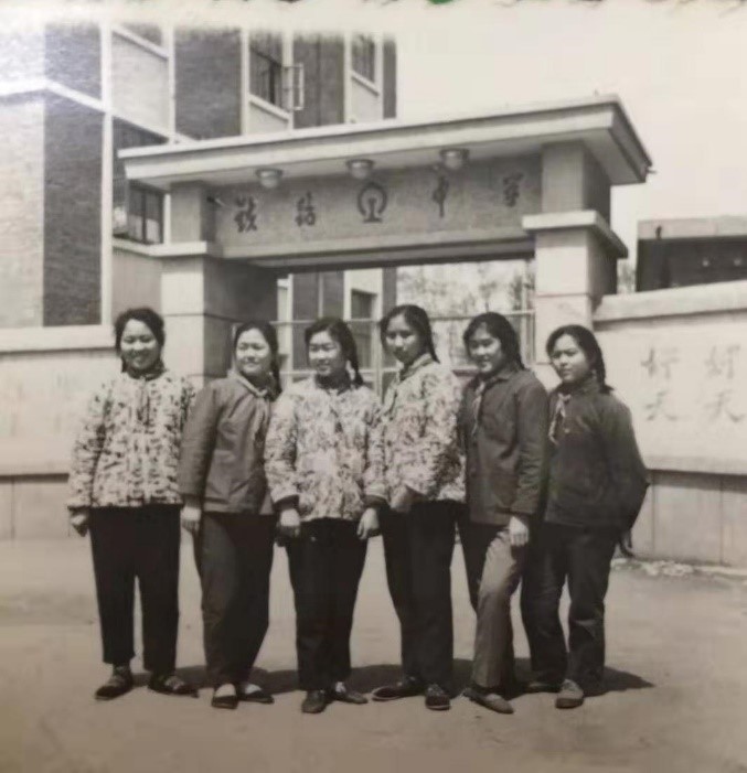 同學(xué)們?cè)阼F路中學(xué)校門(mén)口合影